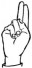 На ћирилици написано БОГДАН ЈОВАНЧЕВИЋ састоји се из 16 слова [?]. Исписано ћириличном једноручном азбуком за глувонеме: